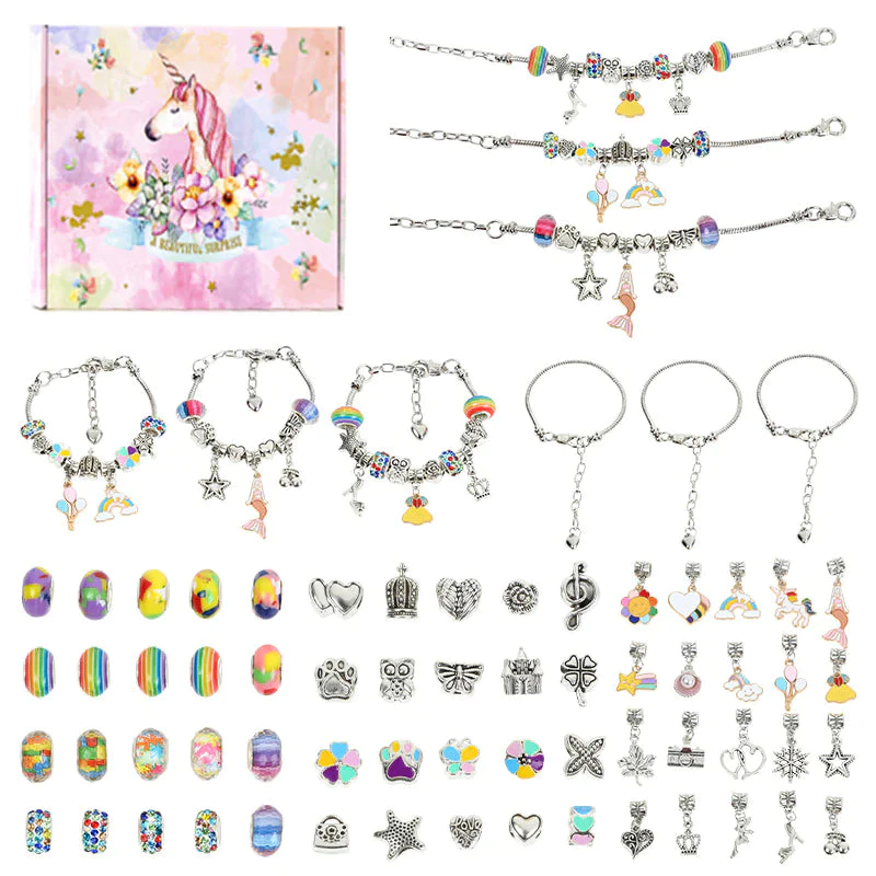 【Lätt att göra själv】: Inga verktyg och lim behövs. Varje pärla eller hänge har ett hål för att enkelt tränga in i armbandet. Barn kan göra smycken färdiga själva, säkert och bekvämt.