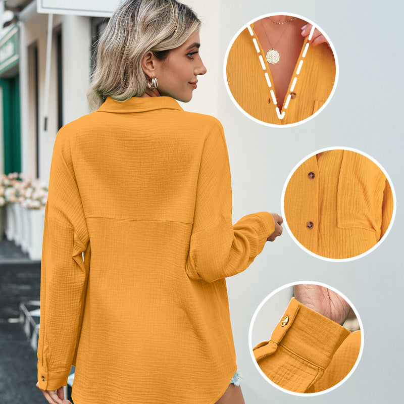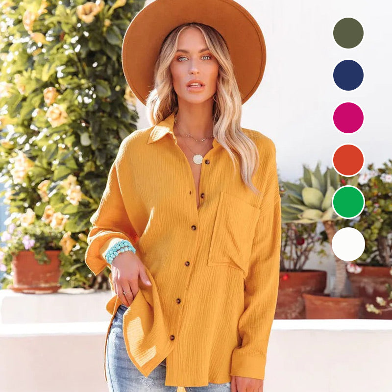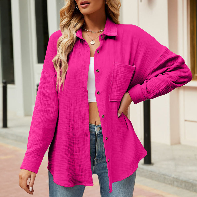 Löst mode långärmad skjorta för kvinnor (med fickor)