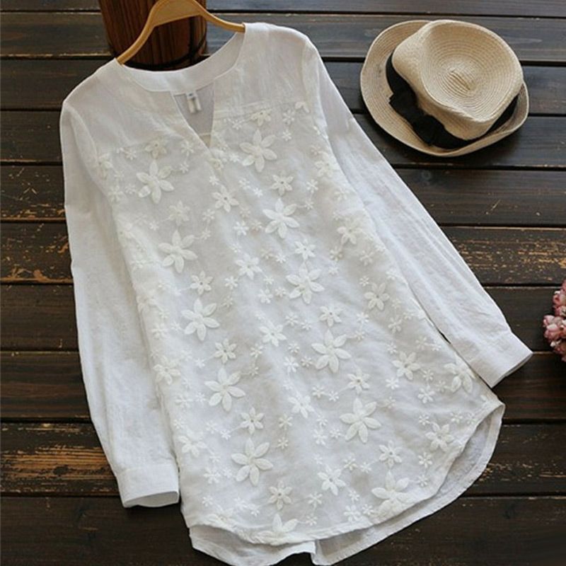 Paketet innehåller: 1 * Kvinnors spetsbroderi enfärgad långärmad blus