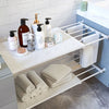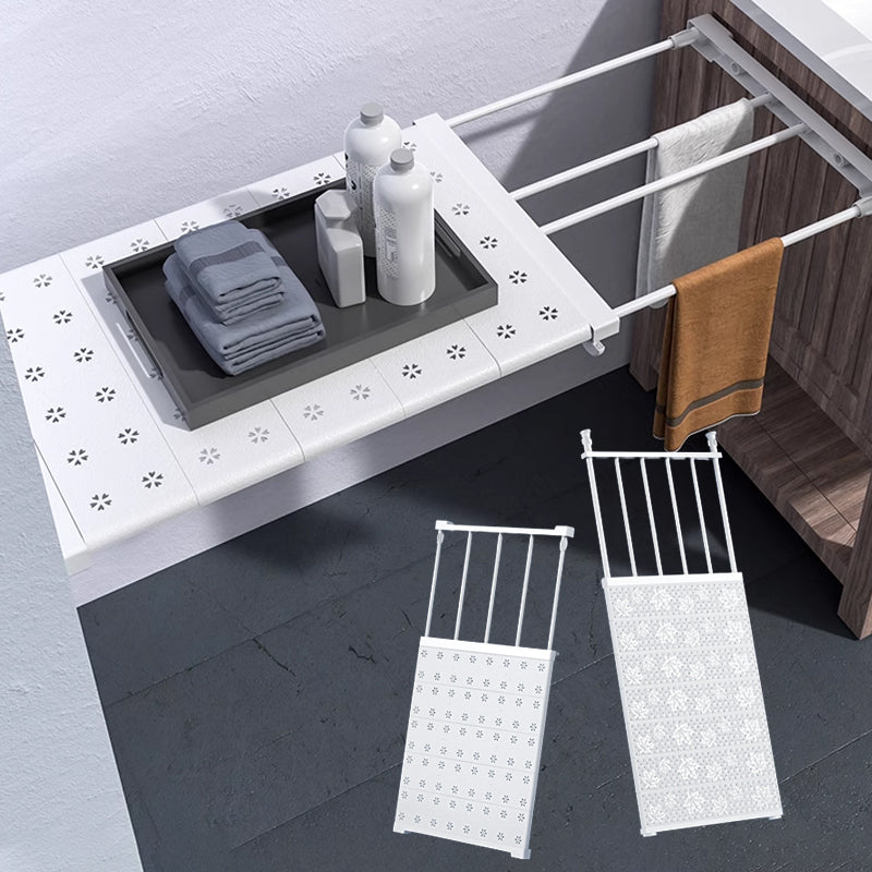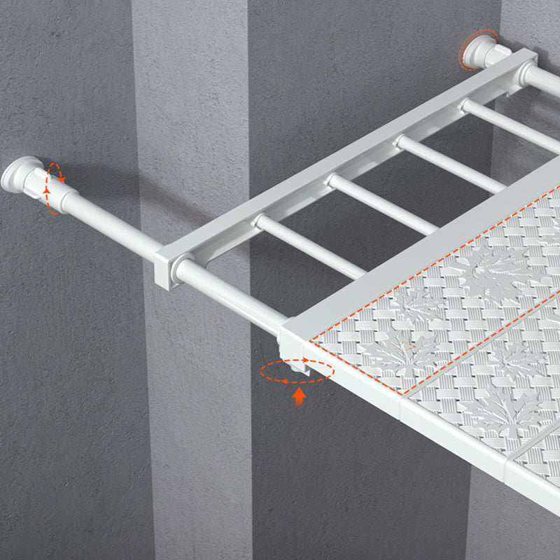 Hårt stålrör & ABS-plast (Clapboard). Hyllan kan ta tag i väggen med friktion och spänning. MAXIMAL BELASTNING: 7-12KG.