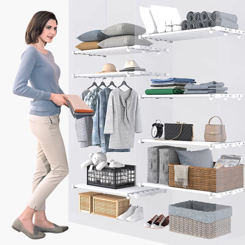 ⚡Het rea⚡Utökningsbar garderob Spänning Hylla Förvaringsställ för garderob, kök, badrum