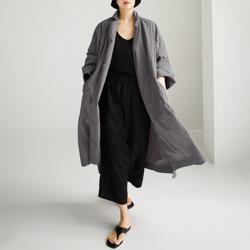 Lång vindjacka med slits i bomull och linne för kvinnor