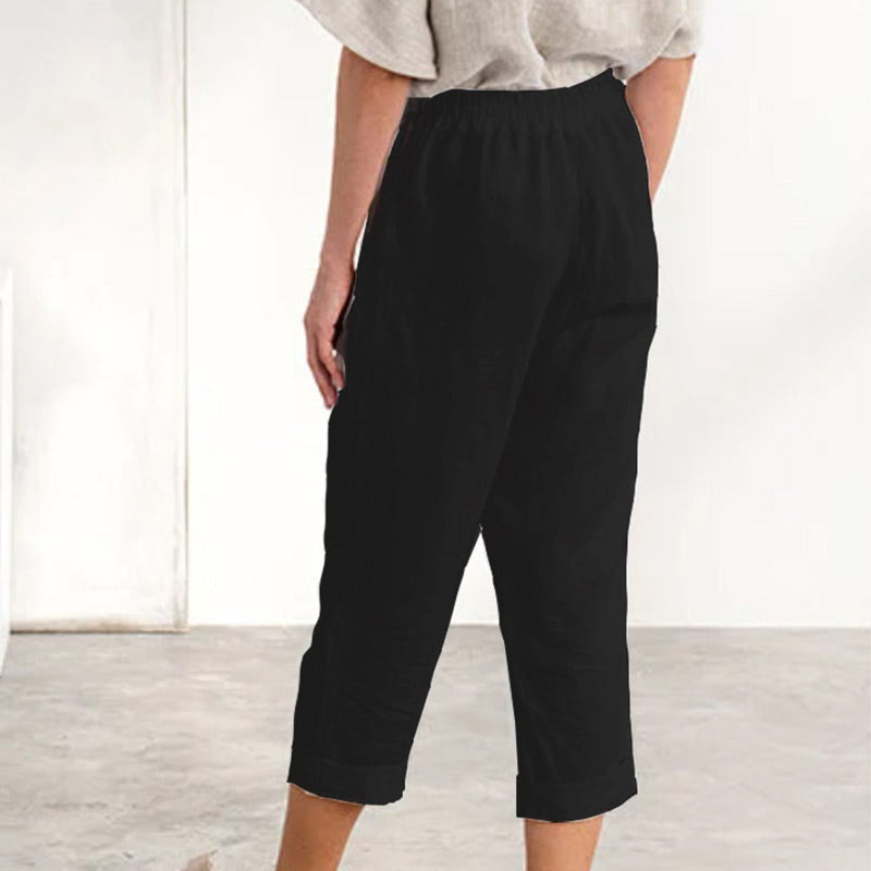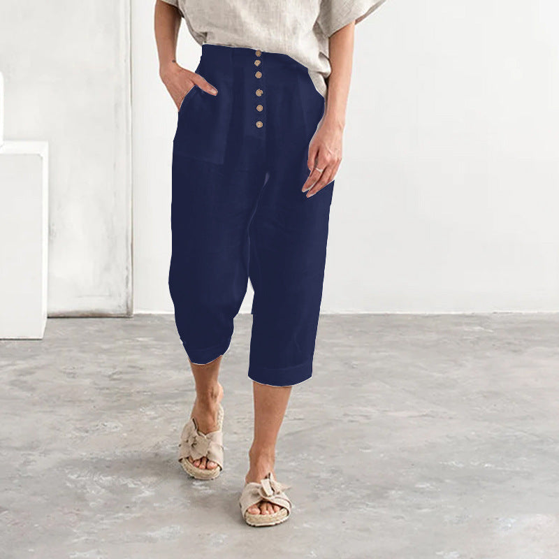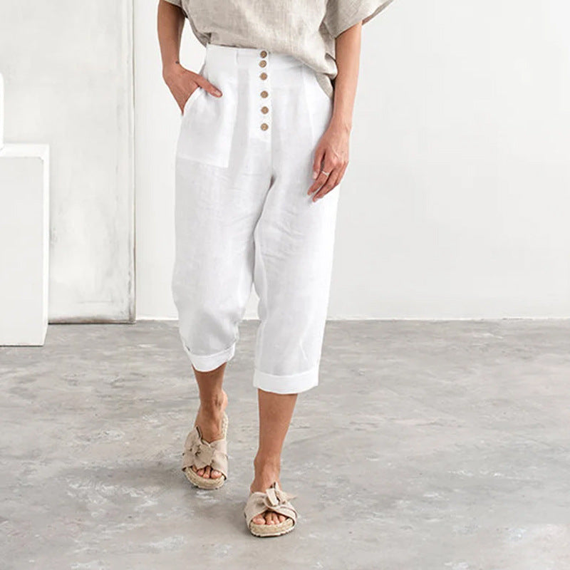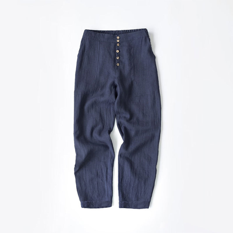 Enfärgad lös bomullsknapp Casual byxor