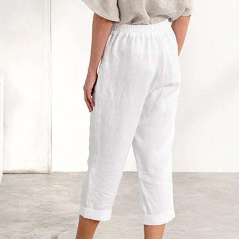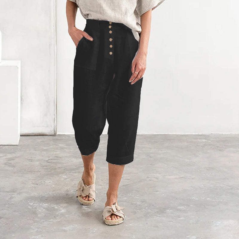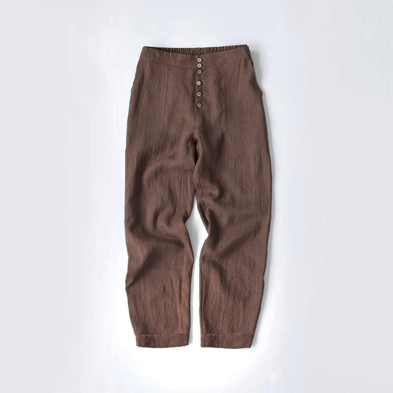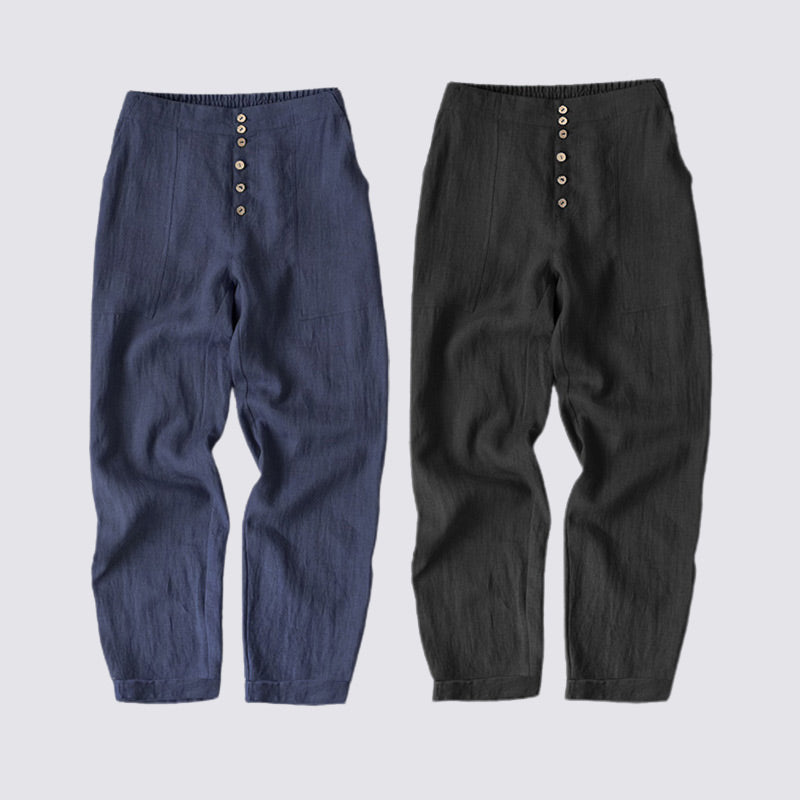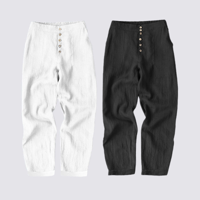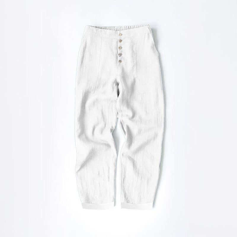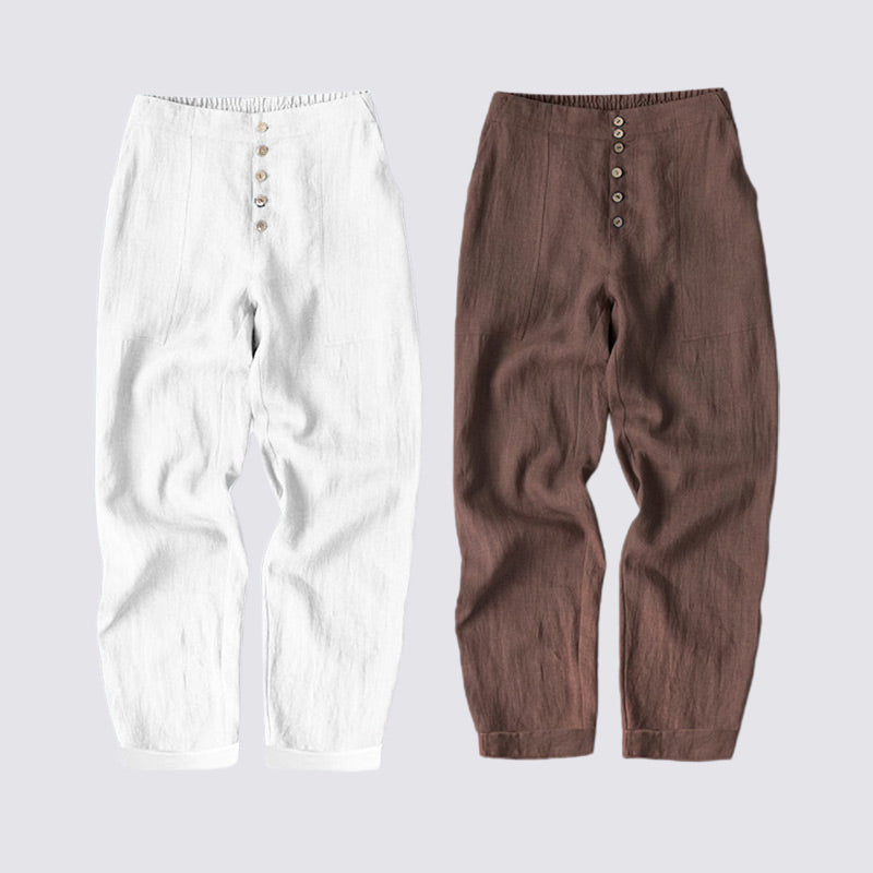 Paketet innehåller: 1/2 * Loose Fit Button Down Bomull Linne Casual byxor i enfärgad