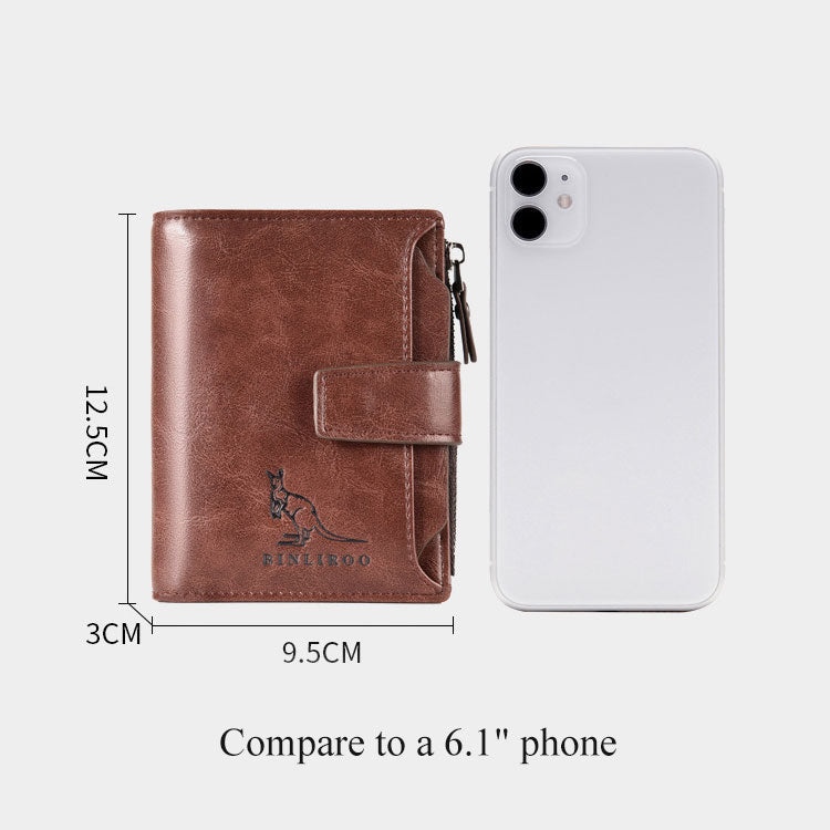 Högkvalitativt läder: Vintagelädret förblir naturtroget och är känsligt för repor. Plånboken absorberar de naturliga oljorna från dina händer, vilket gör att plånboken får en rik och mörk färg. Varje plånbok har en fängslande historia att berätta.